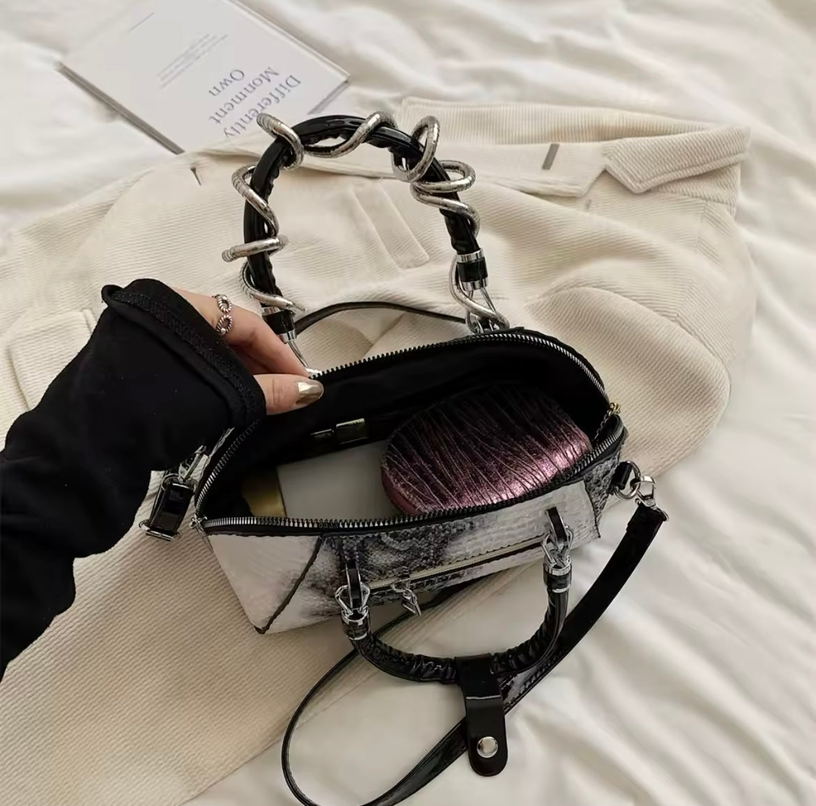 MOODS Designer Luxury Bags For Women Crocodile Pattern Top-handle Shell Bag With Snake Hardware Wild Shoulder Crossbody Handbags